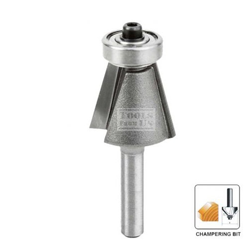 - Is a specialized router bit used to cut a beveled edge at a precise 45-degree angle on the edge of a workpiece.