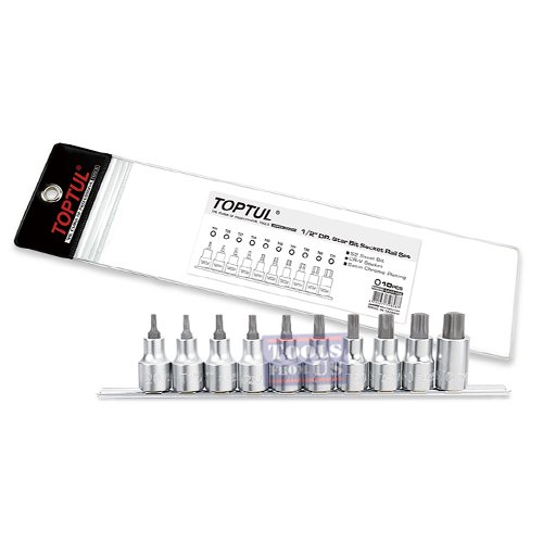 TOPTUL 10PCS 1/2″ Drive Star Bit Socket Rail Set