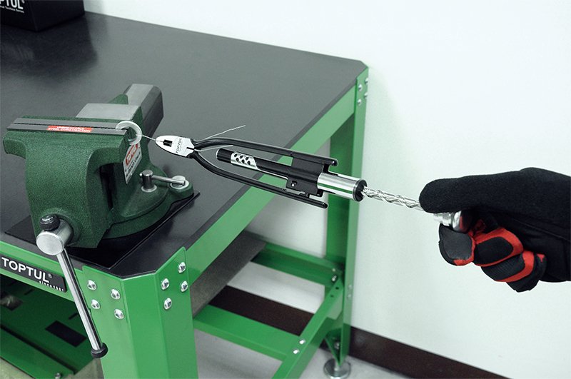 - Special versatile tool for reliable safety-wiring rapidly and consistently