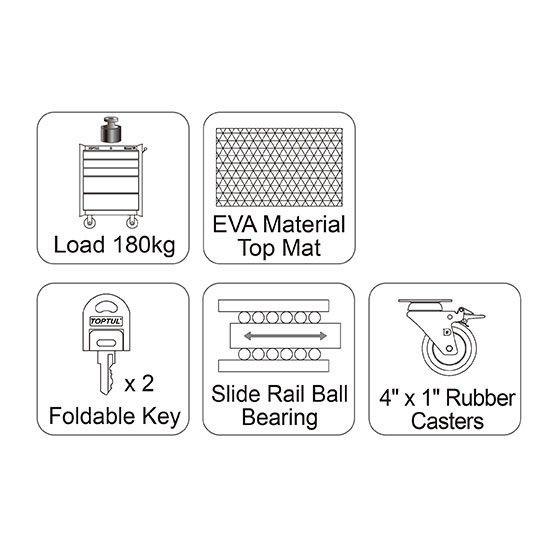 TOPTUL Small 5-Drawer Mobile Tool Trolley